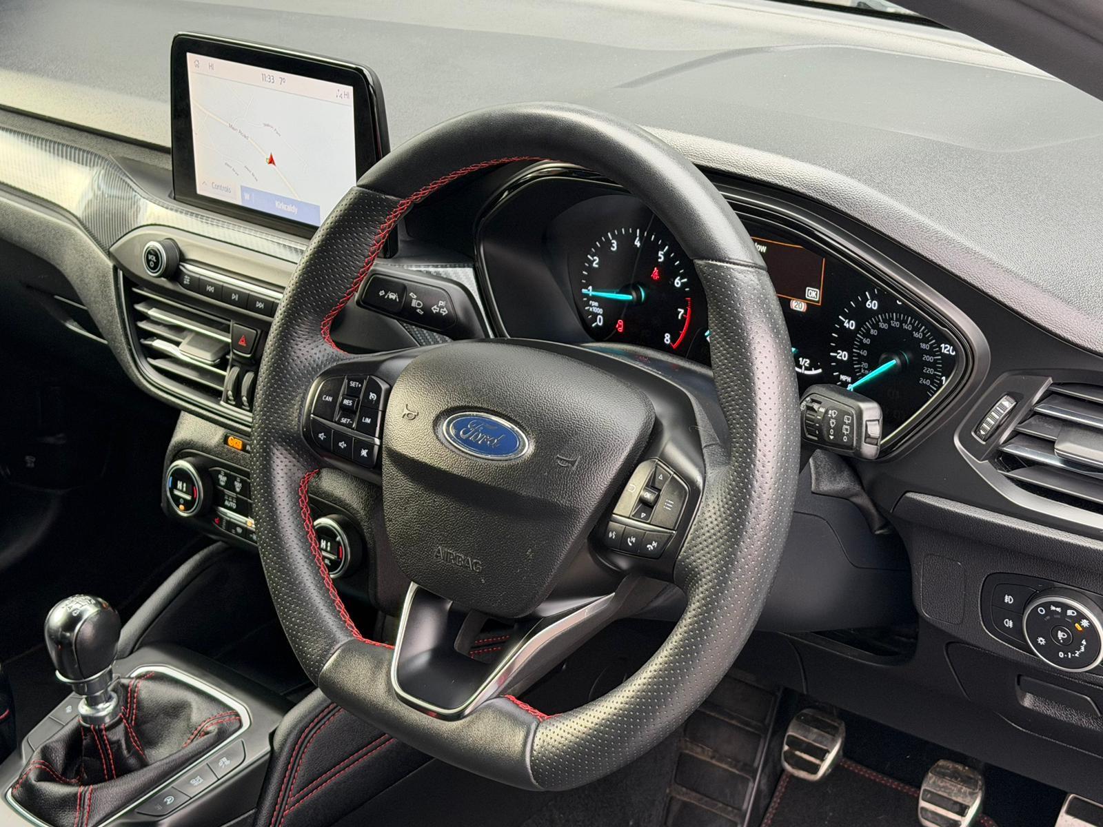 This 2020 Ford Focus ST-Line X presents an exceptional opportunity with its remarkably low mileage of just 32,000 miles. This 1.5 litre petrol model, finished in the sporty ST-Line X trim, adheres to Euro 6 emissions standards. It comes equipped with the Convenience Pack, which includes a rear-view camera to aid parking. Comfort is further enhanced by a heated steering wheel and Dual-Zone Electronic Automatic Temperature Control, ensuring a pleasant cabin environment regardless of the weather. Automatic headlights and front and rear parking sensors are also included, making every journey more convenient and secure.