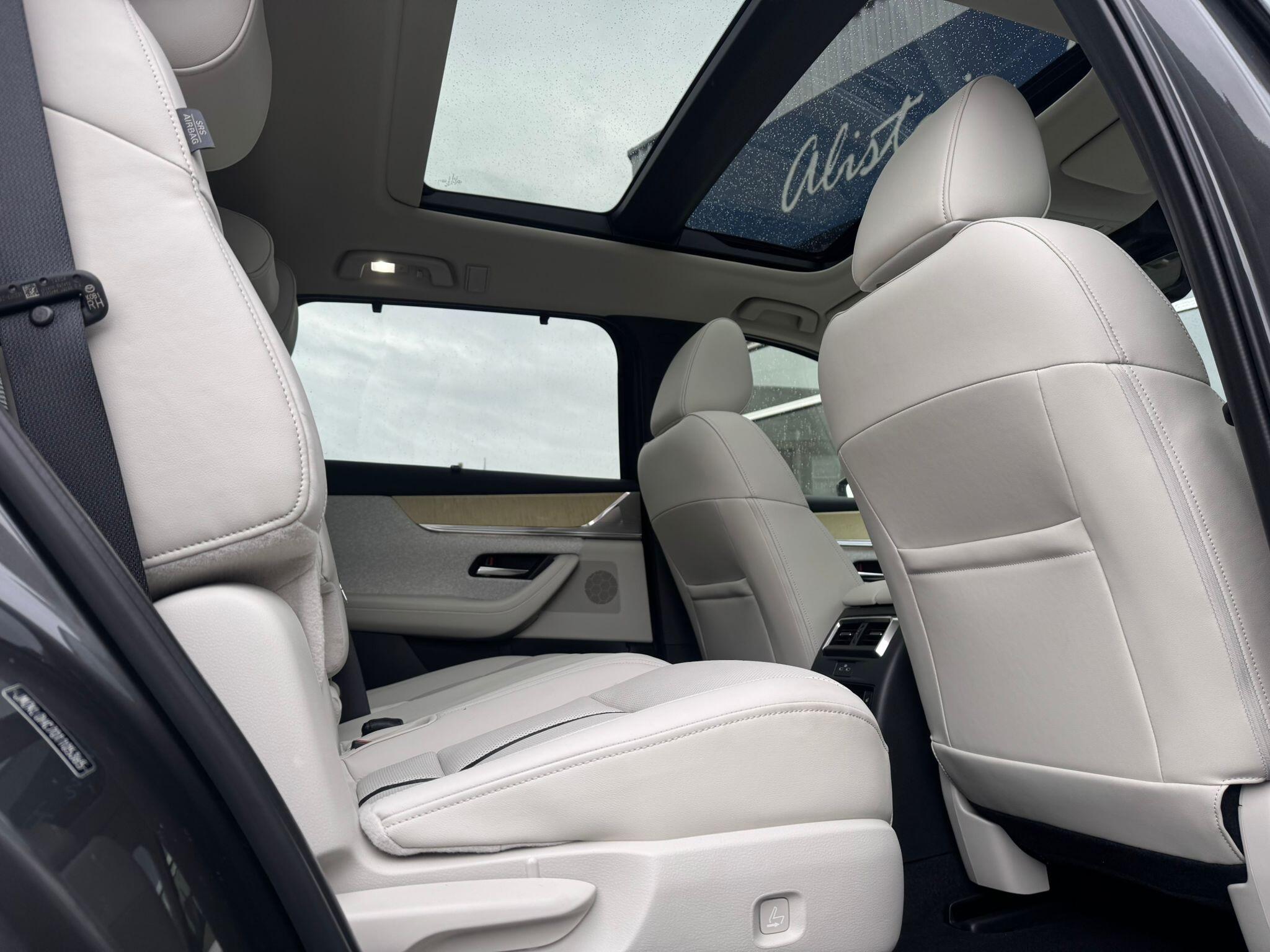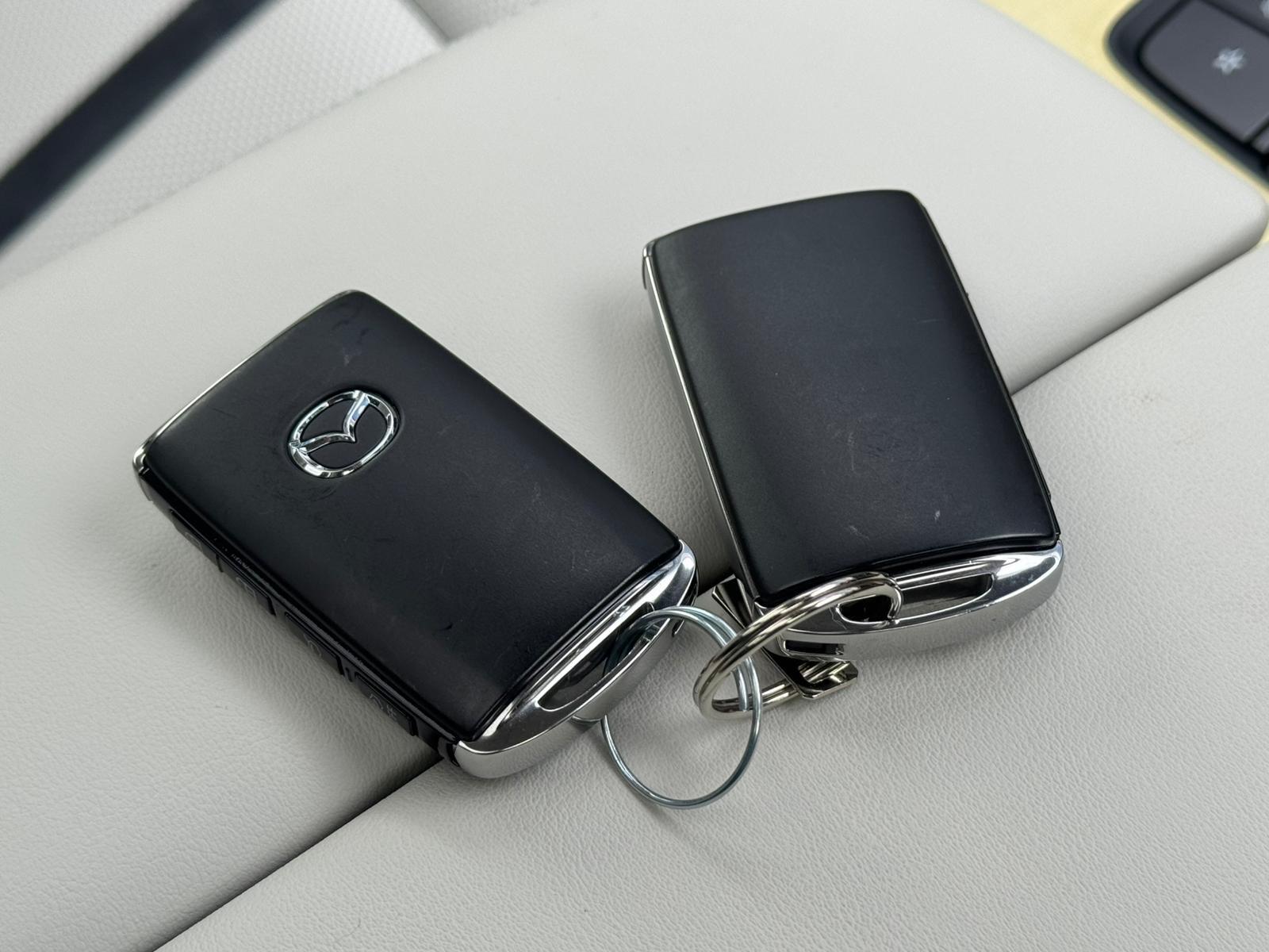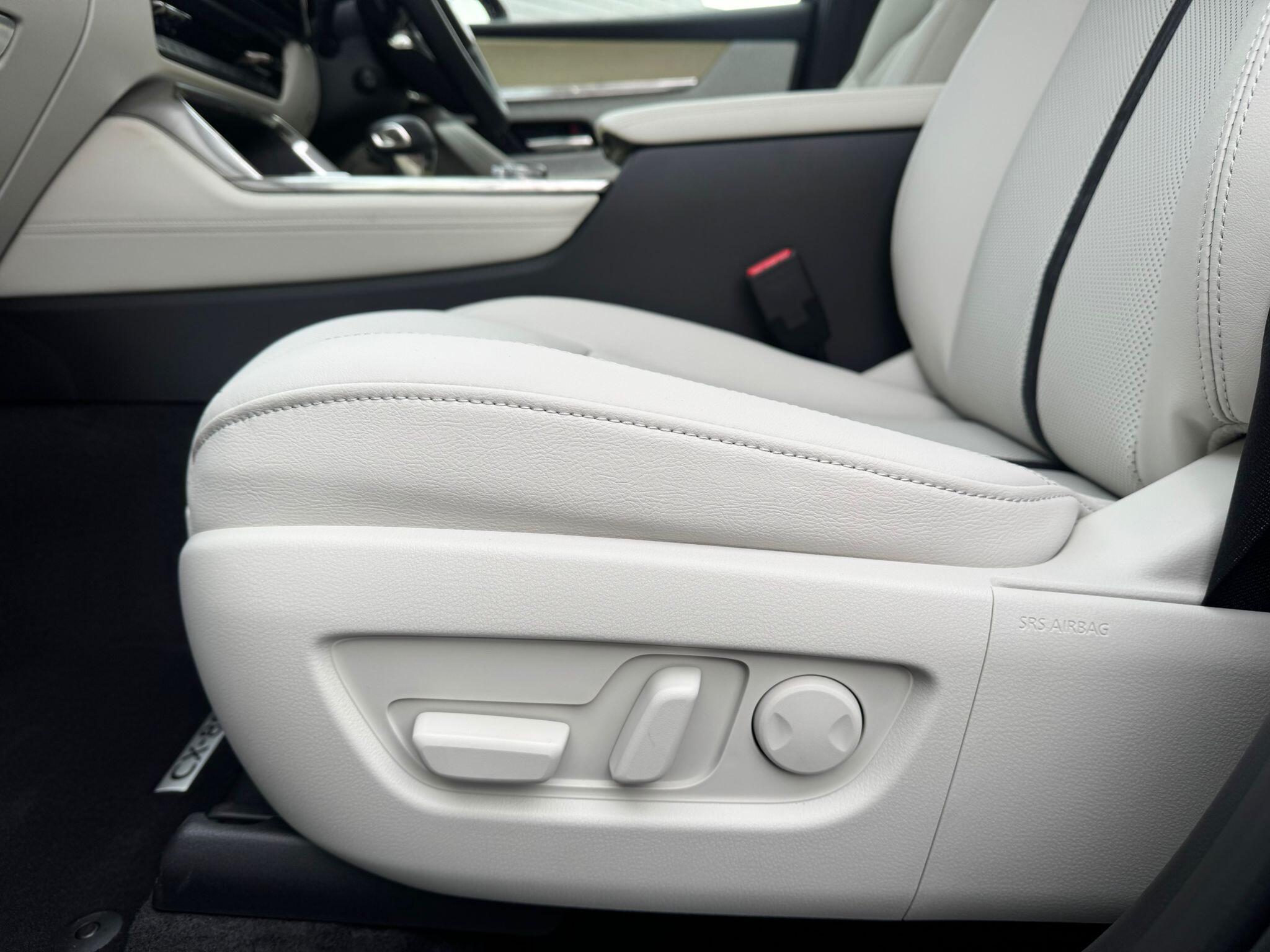 This 2025 Mazda CX-80 e-SKYACTIV D Takumi Plus presents an exceptional ownership opportunity with an incredibly low mileage of just 400 miles. As a single owner vehicle, this Four Wheel Drive model boasts a powerful yet efficient 3.3L Diesel Hybrid Engine, adhering to Euro 6 emissions standards. Inside, you'll find comfortable seating for seven, complemented by Three Zone Climate Control Air Conditioning with dedicated rear air vents for the second and third rows, ensuring everyone stays comfortable. The Takumi Plus trim enhances your driving experience with heated outer rear seats in the second row, a Reversing Camera with Dynamic Lines for easier parking, and advanced safety features like Blind Spot Monitoring with Rear Cross Traffic Alert and Vehicle Exit Warning. Smart Keyless Entry adds to the convenience of this well-appointed SUV.