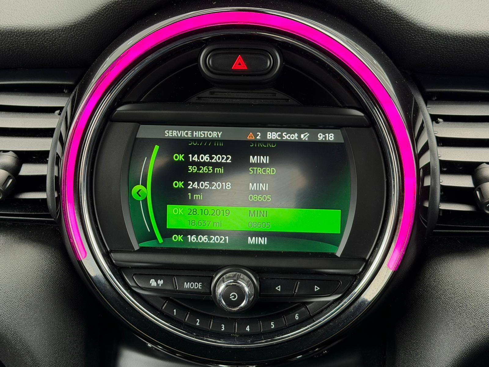 This 2018 MINI Hatch Cooper S is a superb example, having had only two owners from new. It boasts a powerful 2.0 litre petrol engine, meeting Euro 6 emissions standards, and comes equipped with the desirable John Cooper Works Sport Pack. You'll also appreciate the convenience of a heated front windscreen, which includes automatic headlight activation, and the practicality of rear park distance control with rear parking assistance sensors. The car is further enhanced by stylish black bonnet stripes and modern LED headlights and daytime running lights.